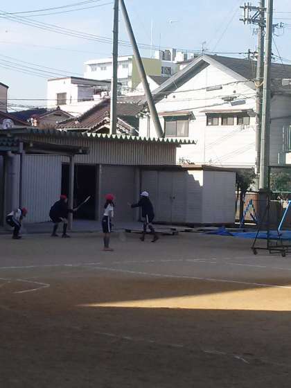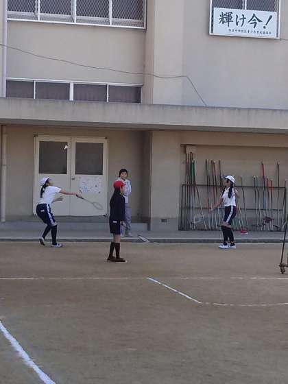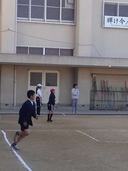 ラリーの練習。今日は、運動場での練習(*^_^*)