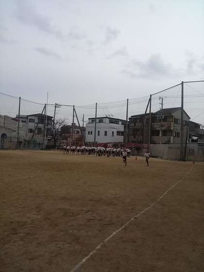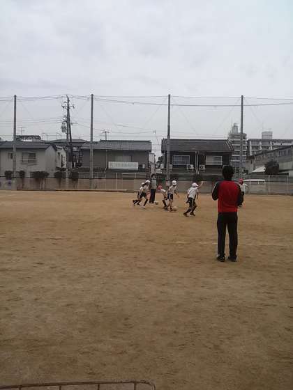 試合前の練習です。グループに分かれて中央にあるボールを取り合います!(^^)!