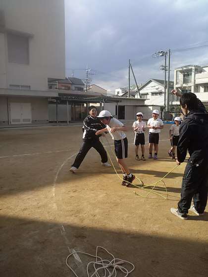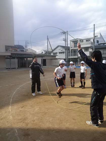 応援団 屋良先生にご指導いただき、ダブルタッチに取り組んでいます。結構みんな上手です!(^^)!