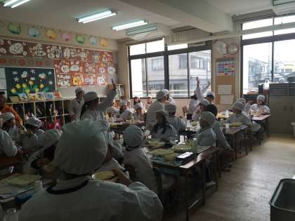 交流給食終了後の昼休みも一緒にドッヂボールをするなど、普段は一緒に遊ぶ機会の少ない6年生との時間を楽しみました。