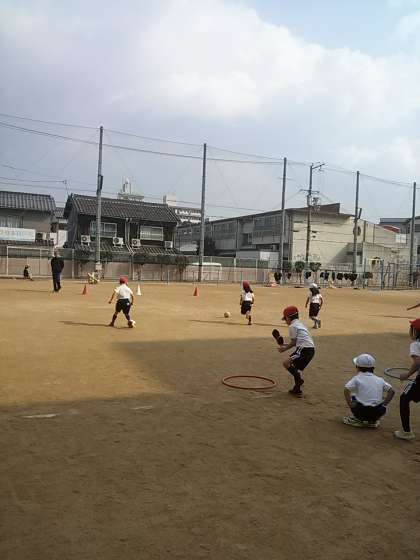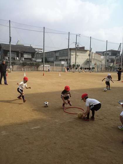 サッカーボールを蹴ってのリレーです(*^_^*)