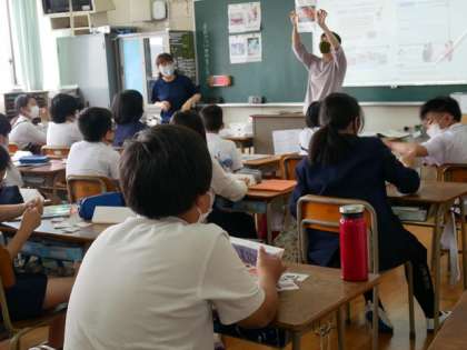 6年生は中学校から教えに来てくれている英語の先生の授業です。英語をきいて・はなすことに、かなり慣れてきたように感じました。もともと言語はコミュニケーションをとるための手段なので、積極性があるほど、上達がはやいと思います。
