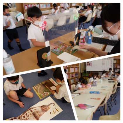 2年生は図書の時間です。図書室で好きな本を探し、コンピューターのシステムで貸し出し処理を済ませたら、静かに本の世界に入り込んでいきます。あらためて図書室の本をいろいろとみてみると、面白そうな本がたくさんあります。「本が好き」と本心から言える子がたくさん育ちますように。