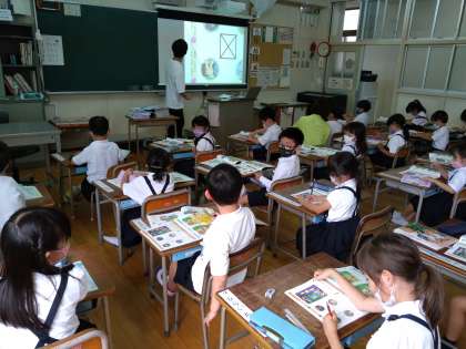 1年生が『ぞうさんとおともだち』という教材で、友だちと仲よくしあうことについて考えていました。しっかりとワークシートに記入して、学習のふりかえりもばっちりです。