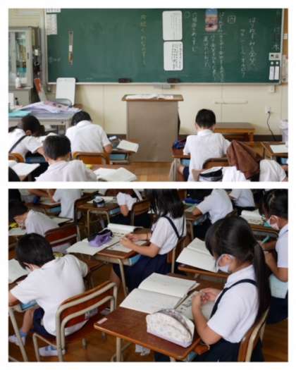 国語の時間に「はりねずみと金貨」という物語を読んで、そのあらすじを書くことにチャレンジしていました。あらすじを書く目的は、本来、どのような物語なのか読んだことがない人に興味をもってもらえるように紹介することだと思います。物語を読んで自分ではどのような物語かわかっていても、それをほかの人にわかりやすく文で伝えることはなかなか難しいです。いろいろと悩みながら書いてみる経験を重ねることで「書く力」が少しずつ伸びていくと思います。