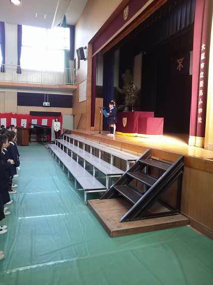 1年生と4年生の児童が、「3学期を振りかえって」をテーマにしたかいた作文を朗読しました。