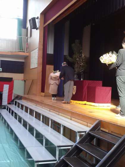 今年度末をもってめでたく定年退職を迎えられる奥田進子校長先生、浜崎 展先生との離任式が行われました。お二人の先生方、長年にわたるご勤務お疲れ様でした。ありがとうございました。