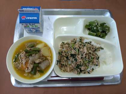 ●豚肉とじゃがいもの煮もの ●オクラの梅風味 ●ツナっ葉いため ●ごはん ●牛乳でした。