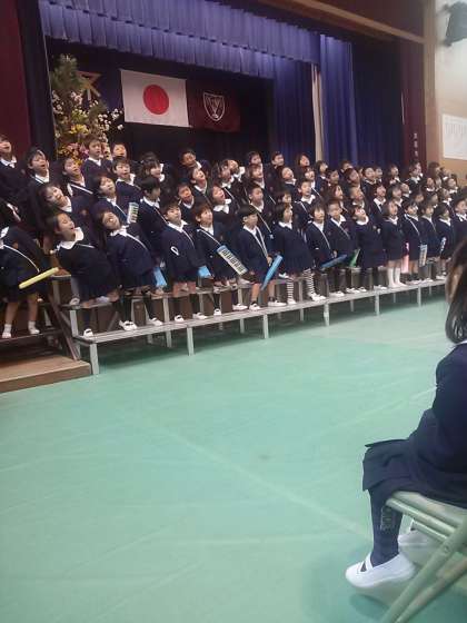 在校生代表として、2年生がお祝いに、よびかけ&演奏&合奏をしてくれました。
