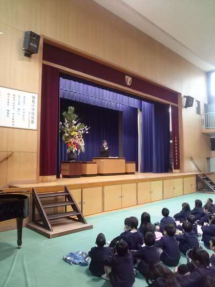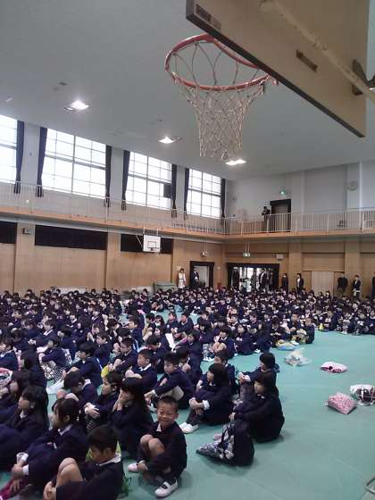 2年生から6年生が講堂に一堂にかいしました。