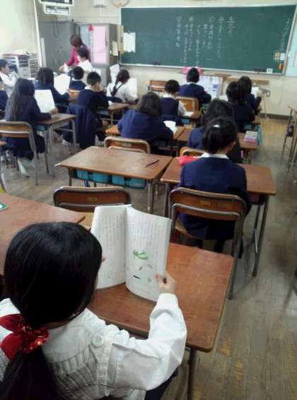 黙読をしています。良い姿勢で読んでいる人が多かったです