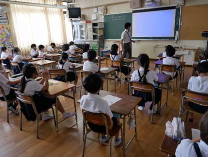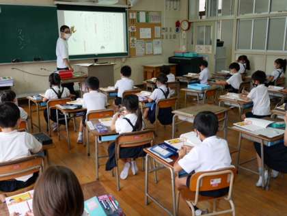写真は1年生と2年生の授業のようす。1年生は国語、2年生は生活の勉強でした。静かに勉強を頑張っています。他の学年もまわりましたが、どの学年も静かに落ち着いて教室での学習をしていました。