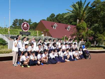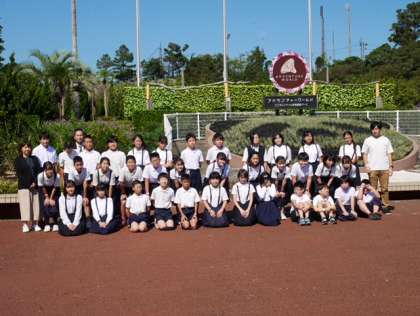園内に入り、まず、クラス写真を撮りました。晴天が眩しくて目が細くなってしまいます。近ごろマスクをした顔しか見ていないので、マスクを外した表情も新鮮です。