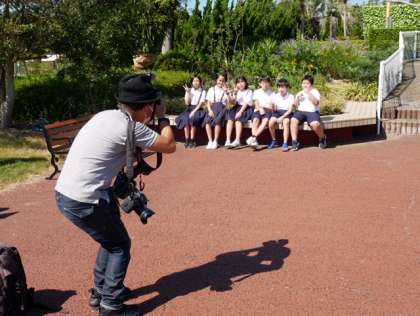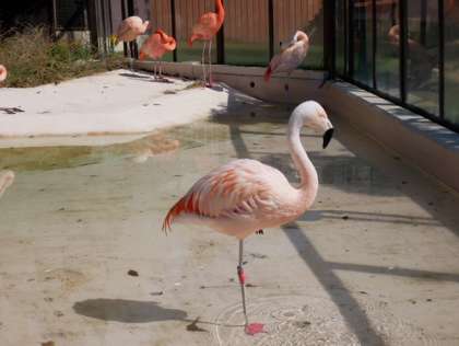 グループ写真も撮りました。すぐ横ではフラミンゴさんが不思議そうに見守ってくれていました。