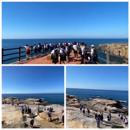 先に三段壁と千畳敷に行っていた2組さんから写真が送られてきました。昔からの有名観光スポットですが、やはり、それだけの見応えがあります。絶景です。