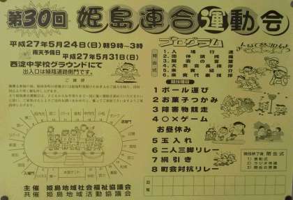 地域の運動会が、5月24日(日)に行われます。場所は西淀中学校です。みなさん、ふるってご参加ください。