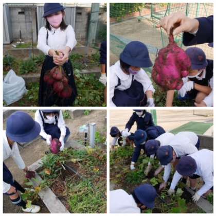 そう。「芋ほり」です。秋の風物詩。収穫のよろこび。土を掘って芋を掘り出すだけの作業がどうしてこんなに楽しいのでしょうか。しだいに全体像をあらわにしていく大きな芋にテンションが高まります。