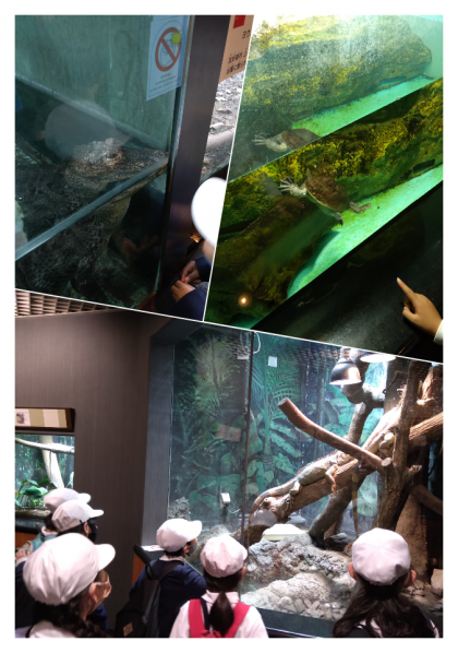 まず始めは、は虫類のみなさんとご対面。大きなカメに驚いたり、ワニとにらめっこしたり。子どもたちの反応は個性豊かです。