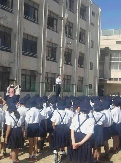 校長先生から、遠足の時のお話がありました。その中で昨日の1年生はとてもマナーが良かったというお話がありました。