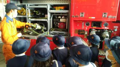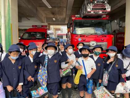 昨日のことになってしまいましたが、3年生が「まち探検」に出かけました。いいお天気のテクテク日和で、子どもたちの表情も楽しそうです。今日のメインの目的地は消防署。消防署の皆さんが、訓練のようすを見せてくださり、わかりやすくお仕事の説明をしてくださいました。