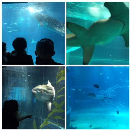 さすが見応えあります。子どもたちは大興奮。ジンベエさんにマンボウさんにハンマーヘッドシャークさんにタカアシガニさんに‥もう次から次へと歓声があがります。