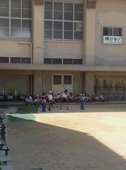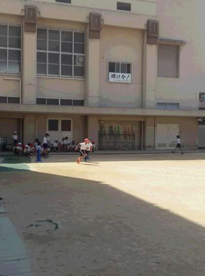 4年生も50メートル走のタイムを計っています!(^^)!3年生の時より、速くなったかな?