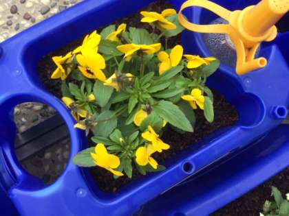 しばらく前に2年生が苗の植えつけをしたビオラですが、寒さに負けず、しっかりと根を張ってすくすくと育ち、色とりどりのきれいな花を咲かせています。よく見ると、小さな葉が中心部にたくさん芽吹き、さらにすくすくと成長していく気配です。どうしても花が少なくなりがちな冬場に咲きほこるビオラ。これから春までのしばらくの間、心をいやしてくれることになるでしょう。