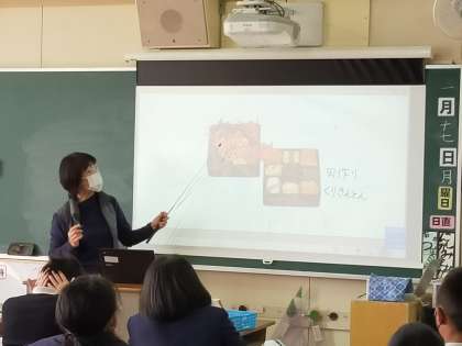 6年生は、家庭科でおせち料理について学習していました。明日(18日)の給食の献立にも「くりきんとん」が登場します。