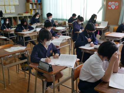 それぞれ、自分で挑戦する級を決めて勉強してきました。1つ1つ確実に解いていきます。合格の知らせが届きますように。真剣な表情がまぶしいです。