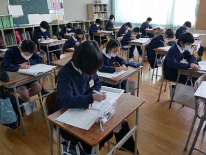 本日2限に5年生が「漢字検定」に取り組みました。本校が属する大阪市教育委員会第1教育ブロックによる学校支援と校長経営戦略支援予算を活用した、学力向上の取組の1つです。4年・5年・6年の3学年で実施。6年生が11月に4年生が1月におこない、今回、5年生がラストです。