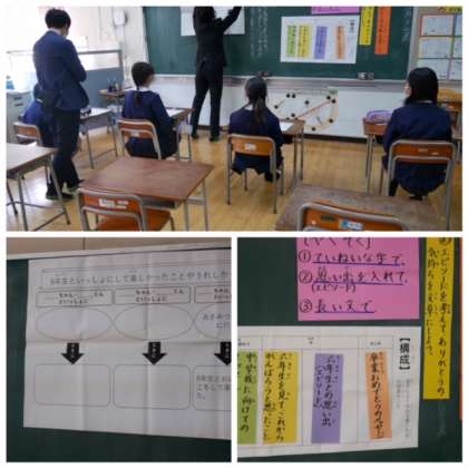 卒業を迎える6年生たちに「ありがとうの気持ちを伝えよう」という学習です。6年生と共にすごした行事などを思い出し、気持ちをこめて手紙を書きます。