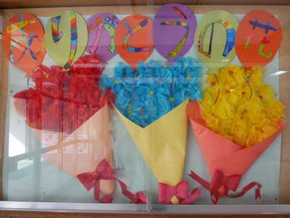 正面玄関の掲示物が新しくなりました。「ありがとうの花」です。卒業生に向けてのメッセージであるとともに、今年度にお世話になった先生や友だちほかたくさんの人に向けての全員のメッセージでもあります。
