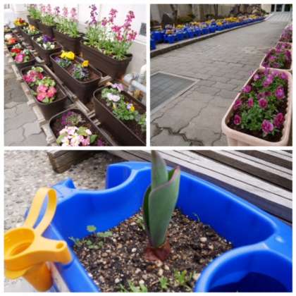 正面玄関まわりの花がさらに増えました。2年生のビオラの向かいにプランターが並べられ、まさに花道です。卒業式にはこの道を最後に通って6年生が正門から旅立ちます。さらに入学式に向けては1年生のチューリップも仲間入りの予定です。しばらく見ない間にずいぶんと成長しました。楽しみです。