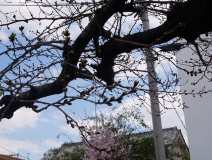 春はもうすぐそこまで‥というか、もう訪れていると言った方がいいかもしれません。校内を歩いてみると、1年生のチューリップのうち、気の早い何本かはすでに花を開かせています。まだつぼみのチューリップも、ぐんぐんと背丈を伸ばしていました。桜の花はさすがにまだ開花の気配はありませんが、つぼみはふっくらとふくらみ、近隣のお宅の早咲きの桜はすでに見頃のようすです。いよいよあと3日後は卒業式。お天気は曇りの予報ですが、何とか卒業式後の門出の時間には春の晴れ間となってほしいです。