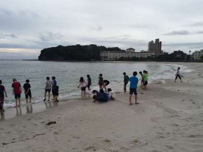 宿舎前には白良浜が広がっています。白良浜は日本でも指折りの美しい砂浜です。
