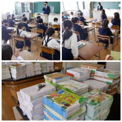 今日は1学期の始業式です。新しいクラス、新しい担任の先生が気になるのか、いつもより登校時間が早い子がたくさんいました。さあ、どんなクラスになったかな。どの先生が担任になったでしょう。楽しいことがたくさんある1年間でありますように。そして、みんなが「がんばる子」と「やさしい子」でいて、たくさん成長できる1年でありますように。真新しい教科書。この中に、新しく知り新しくできるようになっていくことがつまっています。