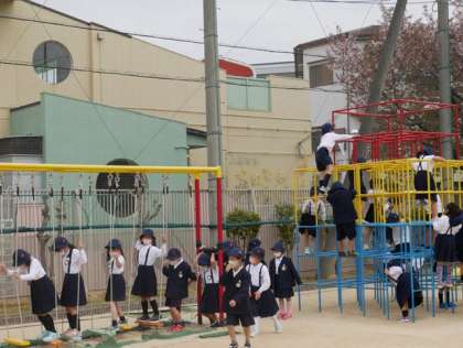 下の写真は1年生のようす。校内の遊具を試してみがてら遊ぶ時間がありました。上手に遊べたかな。保護者のみなさんは、この時間帯にはきっと、大丈夫かな元気に頑張っているかなとご心配のことでしょう。大丈夫です。しっかりと先生の話をきいてかしこく元気にがんばっています。