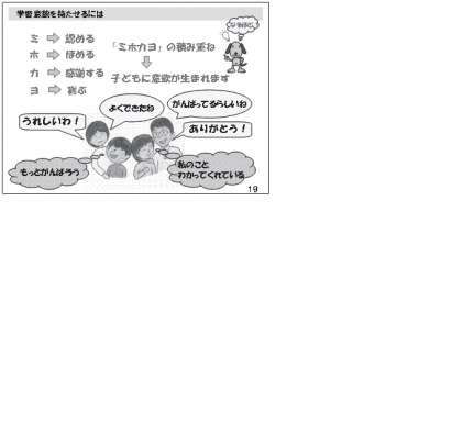 看護するの(看る)という見方が大事です。ちがいや変化や努力のあとに気づいたら、心から、賞賛の声をかけてあげることです。それだけでいいのです。そんなに難しいことではありません(食事をともにする、一緒に読書をする等)。この認めるということの意味や大切さをしっかり理解してもらって、このミホさんとカヨさんを積み重ねていくことです。いつも自分はちゃんと見てもらえていると感じている子どもは、すごく安心感に包まれて、知らず知らずのうちにどんどんがんばろうとするでしょう。