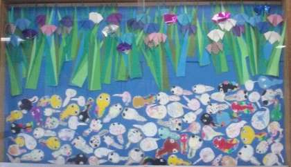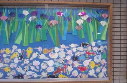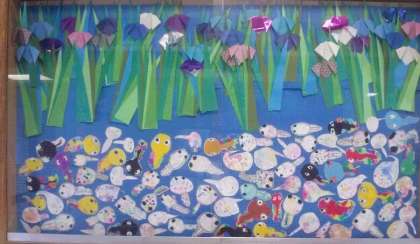 6月は2年生の担当です。かわいらしくカラフルなオタマジャクシがたくさん泳いでいます!(^^)!