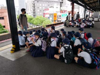 午前中はくもりもしくはパラパラ小雨の予報です。遠足に出発しました。阪神電車は梅田方面、福島駅で環状線に乗り換えなので、一般のお客様がたくさん乗車しています。電車のマナーを守って頑張っています。楽しい1日になりますように。