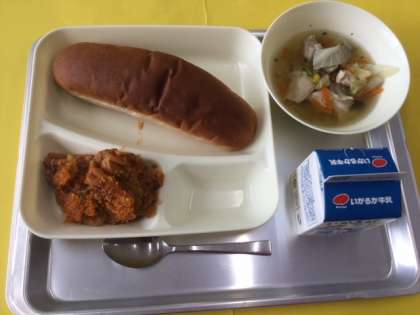 じゃがいものミートグラタンはひき肉もたっぷりで食べ応えのある一品でした。スープ、黒糖パンとの相性も抜群です。調理員さん、今日もありがとうございます。