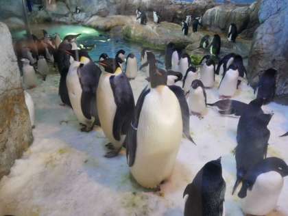次はいよいよイルカショー。その道中に見送ってくれたペンギンさんの風景を挟みます。