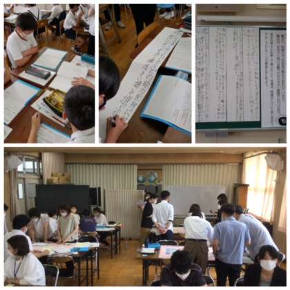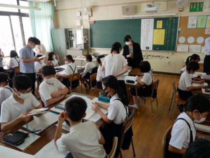 今日は6限に「主体的に学び、自分の思いや考えを書くことができる子どもを育てる」授業を目指す、校内研究授業をおこないました。「動物たちが教えてくれる海のくらし」という文章を題材に学習を進め、今日は、その5時間目で文章の要旨をまとめる、それぞれが考えた要旨をグループで伝えあい1つの要旨にまとめる活動をおこないました。