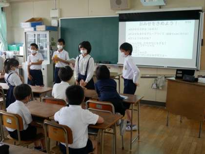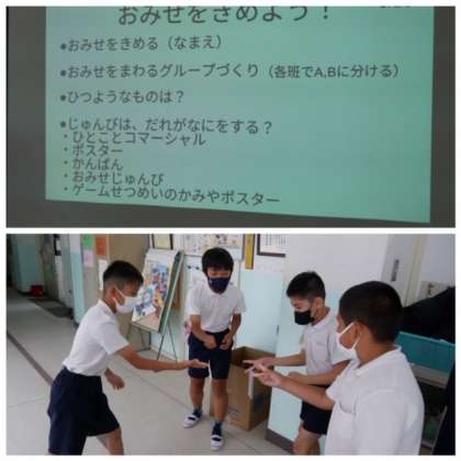 7月7日の「姫島ハッピーフェスティバル」に向けての「たてわり班活動」をおこないました。姫島ハッピーフェスティバルは、1年生から6年生で編成されたたてわり班で、みんなが楽しくすごせる「おみせ」を企画して準備し、当日はおみせ番のシフトを決め、おみせ番の時以外はたくさんのおみせをめぐって楽しい時間をすごすというイベントです。令和2年度は中止。令和3年度は復活しました。楽しくて準備を頑張る体験もできていい取組だなと印象にのこったことを覚えています。