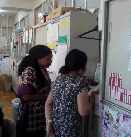 今日の給食の時間、C-NETのジョジョ先生が給食のメニューを英語で紹介してくれました。
