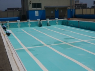 昨日は放課後に先生たちみんなでプールの掃除をおこないました。今日は朝から人知れず教頭先生、管理作業員さん、事務職員さんで塗装がはがれているところで怪我をしないように防水補修テープをはってくれています。みんなが安全に気持ちよくプール学習をおこなえますように。教職員みんなの願いです。