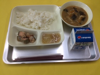 今日の給食は 鮭のつけ焼き みそ汁 とうがんの煮物 ごはん 牛乳 の献立です。和の献立で暑い夏にピッタリのとうがんが登場しました。