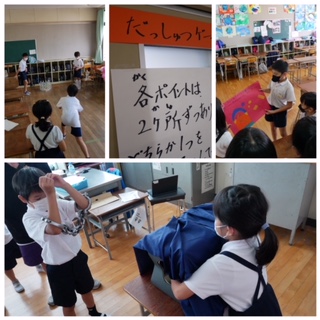今日は年に1度の「姫島ハッピーフェスティバル」です。この日のために「たてわり班」で準備してきたゲーム(お店)を各教室に設営し、店番を交代しながら、みんなで楽しみます。「笑顔がたくさん、笑い声があふれる、思い出に残るすてきなハッピーフェスティバルにしよう」というめあては十分にかなえられたと思います。楽しい時間をすごすことができました。「たてわり班」活動の機会です。この機会に「協力」や「チームワーク」の大切さを学んでくれたことを願ってやみません。そして、その大変さも。