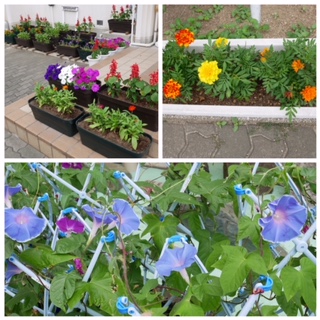 校内には、校外学習関係の掲示物や理科の観察の掲示物など、さまざまな見応え読み応えのある掲示物があります。また、玄関周りの植物たちも数こそ多くはありませんがきれいに咲いて保護者の皆様のご来校をお待ちしています。