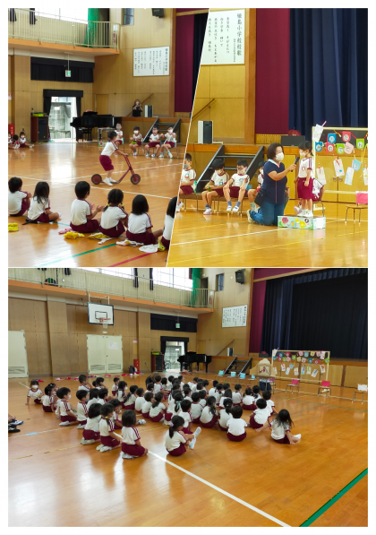 姫島幼稚園の園児たちが本校の講堂で8月の誕生日会を開催しました。